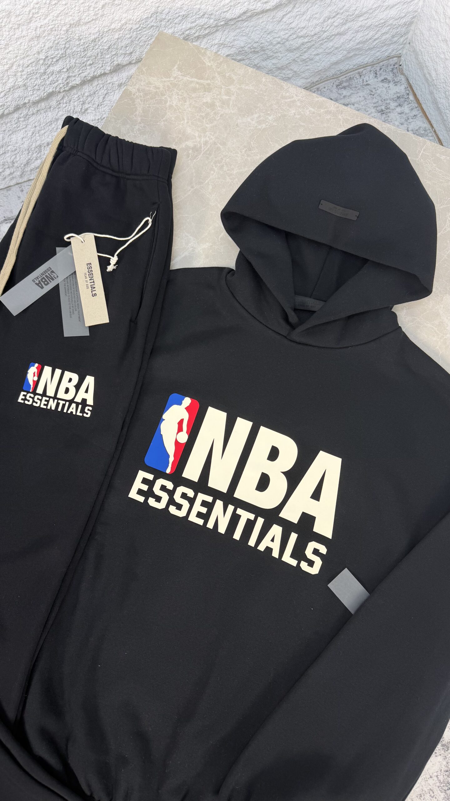 Ensemble Fear of God Essentials × NBA, alliant confort et style urbain. Confectionné en molleton 380 g/m², il comprend un hoodie à capuche avec poche kangourou, manches et bas côtelés, et un pantalon assorti pour un look coordonné. Le hoodie arbore le logo Essentials incliné au dos et la signature NBA, apportant une touche sportive iconique à cette silhouette moderne et décontractée. Parfait pour un style streetwear sophistiqué au quotidien.